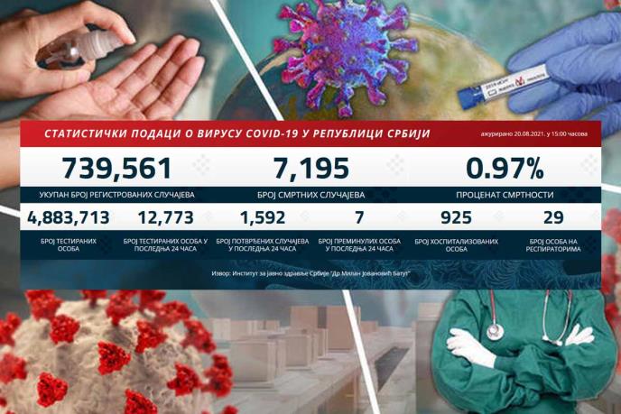NAJNOVIJI KORONA PRESEK: Danas 1.592 novozaražena, preminulo 7 pacijenata