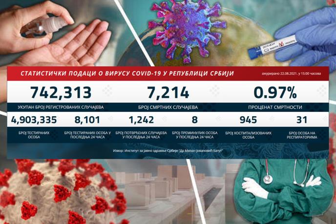 U prethodna 24 sata u Srbiji je na korona virus testirano je 8.101 građana, od kojih je 1.242 novozaraženih.