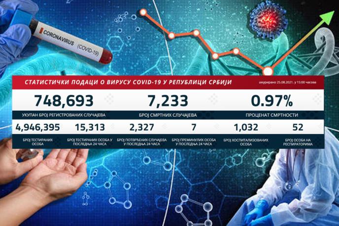 U prethodna 24 sata u Srbiji je na korona virus testirano je 15.313 građana, od kojih je 2.327 novozaraženih.