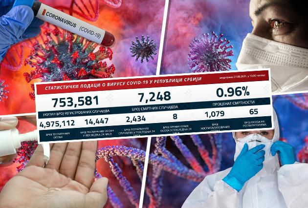 U prethodna 24 sata u Srbiji je na korona virus testirano je 14.447 građana, od kojih je 2.434 novozaraženih.