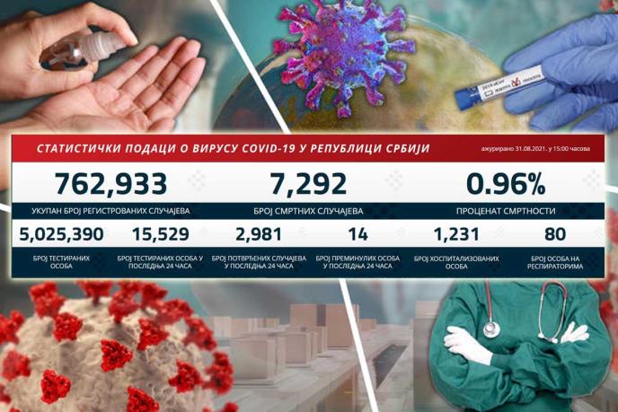 Preminulo je 14 pacijenata, a na respiratorima u bolnicama širom Srbije nalazi se 80 obolelih.