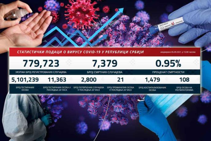 U prethodna 24 sata u Srbiji je na korona virus testirano je 11.363 građana, od kojih je 2.800 novozaraženih.