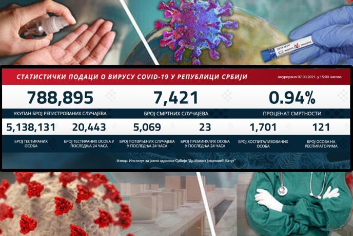 Preminula su 23 pacijenta, a na respiratorima u bolnicama širom Srbije nalazi se 121 obolelih.