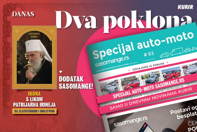 Dnevne novine Kurir poklanjaju IKONE S LIKOVIMA SRPSKIH PATRIJARHA! Danas ćete dobiti IKONU S LIKOM PATRIJARHA IRINEJA u zlatotisku i dodak specijal auto-moto SASOMANGE.RS - oglasnik za sve automobile u Srbiji!