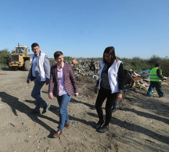 Premijerka Ana Brnabić i ministarka za zaštitu životne sredine Irena Vujović prisustvovale su danas u selu Obrež, u opštini Pećinci, početku radova na uklanjanju divlje deponije na kojoj se otpad nagomilavao oko 40 godina.