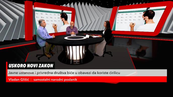 O ovoj temi govorilo se u emisiji "Redakcija" na Kurir televiziji, a gosti su Miodrag Kojić iz Udruženja za odbranu ćirilice "Dobrica Erić" i Vladan Glišić, samostalni narodni poslanik.