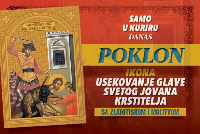 Srpska pravoslavna crkva i njeni vernici danas obeležavaju praznik posvećen Usekovanju glave Svetog Jovana Krstitelja. Tim povodom danas ćete uz dnevne novine Kurir dobiti na poklon ikonu sa zlatotiskom i molitvom.