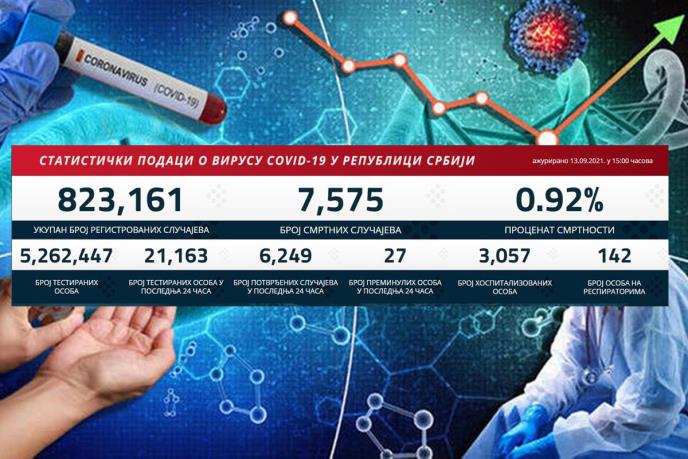 U prethodna 24 sata na korona virus testirana su 21.163 građana, od kojih je 6.249 novozaraženih.