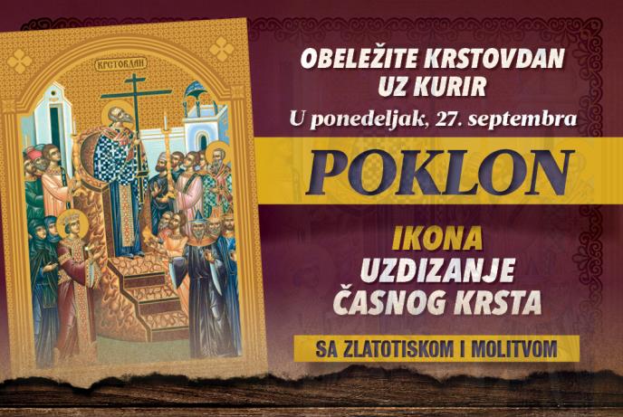OBELEŽAVAMO KRSTOVDAN: U ponedeljak, 27. septembra, Kurir poklanja IKONU UZDIZANJE ČASNOG KRSTA SA ZLATOTISKOM