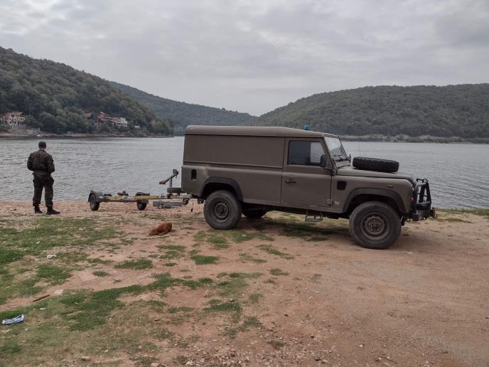 Pripadnici ronilačke jedinice Žandarmerije sonarom pretražuju jezero u cilju eventualnog pronalaska vozila porodice.