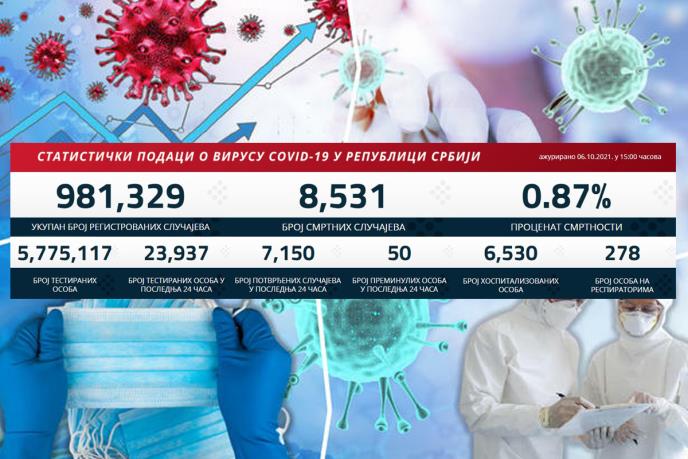 Preminulo je 50 pacijenata, a na respiratorima u bolnicama širom Srbije nalazi se 278 obolelih.