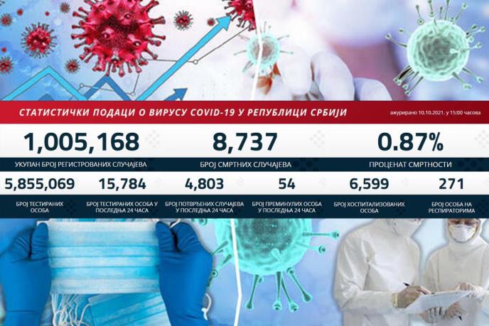 U prethodna 24 sata na korona virus testirano je 15.784 građana od kojih je 4.803 novozaraženih.