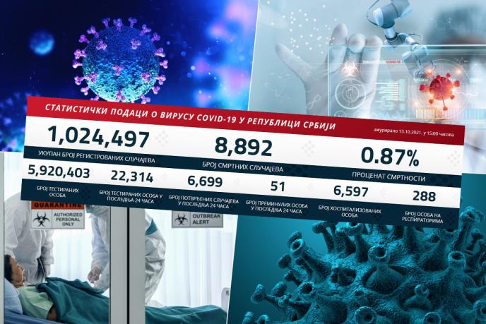NAJNOVIJI KORONA PRESEK: Danas 6.699 novozaraženih, preminuo 51 pacijent