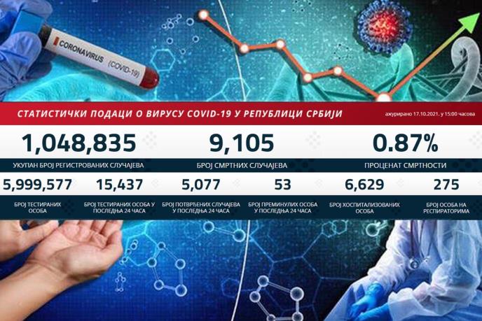 U prethodna 24 sata na korona virus testirano je 15.437 građana od kojih je 5.077 novozaraženih.