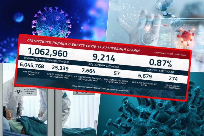 Preminula su 57 pacijenta, a na respiratorima u bolnicama širom Srbije nalazi se 274 obolelih.