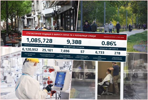 Preminulo je 57 pacijenata, a na respiratorima u bolnicama širom Srbije nalazi se 278 obolelih.