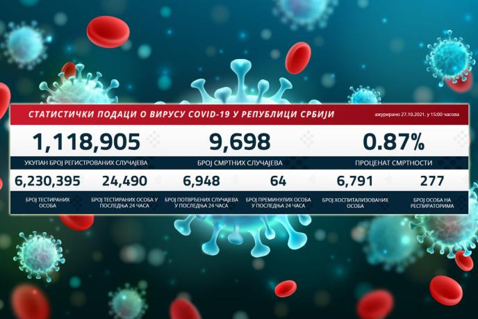 Preminula su 64 pacijenta, a na respiratorima u bolnicama širom Srbije nalazi se 277 obolelih.