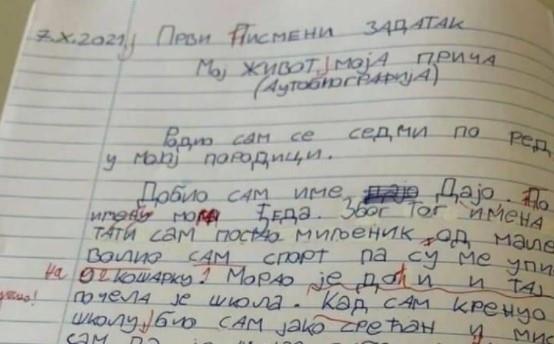 Tviteraše širom regiona nasmejao je i zabavio pismeni zadatak malog Daje na temu Moj život, moja priča u kojem je mališa najiskrenije napisao šta misli o školi onako uopšteno.