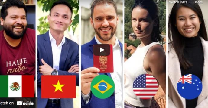 Bela je iz Vašingtona, u Srbiji živi već 3, 5 godine. Karlos je iz Pačuke u Meksiku i u Srbiji živi već 6 godina. Hoan je iz Vijetnama i u našoj zemlji boravi već 9, 5 godina. Tiago dolazi iz Rio de Ženeira i u Srbiji živi već 9 godina.