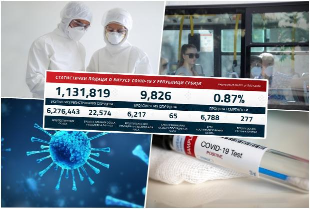 Preminula su 65 pacijenta, a na respiratorima u bolnicama širom Srbije nalazi se 277 obolelih.