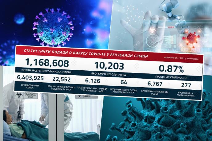 NAJNOVIJI KORONA PRESEK: Danas 6.126 novozaraženih, 64 pacijenta preminula