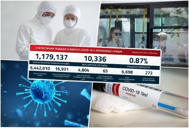 NAJNOVIJI KORONA PRESEK: Danas 4.804 novozaražena, preminulo 65 pacijenata