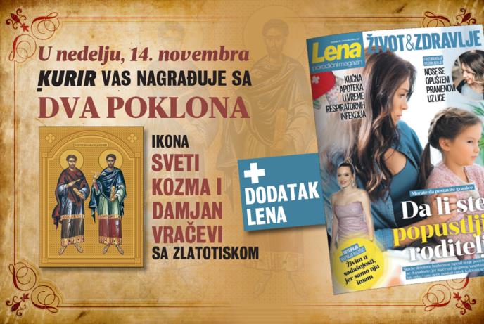 Svake nedelje uz dnevno izdanje novina očekuju vas i pokloni. U nedelju, 14. novembra, dobićete ikonu Svetog Kozme i Damjana Vračevi, a pored toga i dodatak porodični magazin Lena.