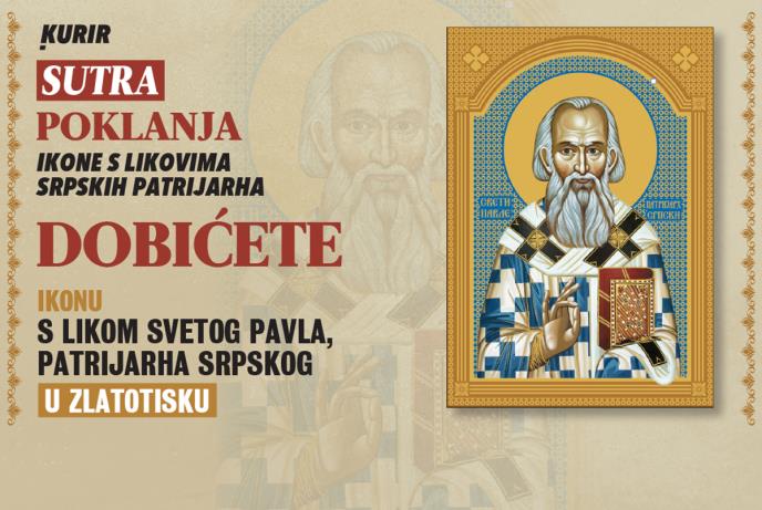 Dnevne novine Kurir poklanjaju IKONE S LIKOVIMA SRPSKIH PATRIJARHA! Sutra ćete dobiti IKONU S LIKOM SVETOG PAVLA, PATRIJARHA SRPSKOG, u zlatotisku.