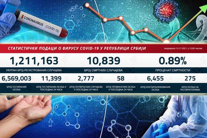 U prethodna 24 sata na korona virus testirano je 11.399 građana od kojih je 2.777 novozaražena.