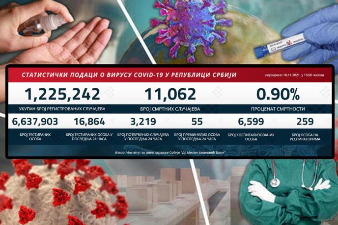 NAJNOVIJI KORONA PRESEK: Danas 3.219 novozaraženih, preminulo 55 pacijenata
