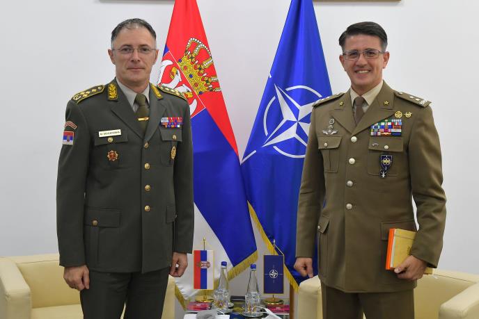 BEOGRAD - Načelnik Generalštaba Vojske Srbije general Milan Mojsilović razgovarao je danas u Beogradu sa direktorom Direktorata za kooperativnu bezbednost Međunarodnog vojnog štaba NATO-a general-majorom Frančeskom Dijelom. Na sastanku je razgovarano o aktuelnoj političko-bezbednosnoj situaciji u regionu, saradnji Vojske Srbije i Kfora i o zajedničkim aktivnostima koje se realizuju u okviru programa Partnerstvo za mir. Tokom susreta je izražena spremnost za nastavak saradnje u oblastima od obostranog interesa, uz očekivanje da će ukupni odnosi nastaviti da se razvijaju u okviru Partnerstva za mir i uz potpuno uvažavanje vojne neutralnosti Republike Srbije, saopštilo je Ministarstvo odbrane.