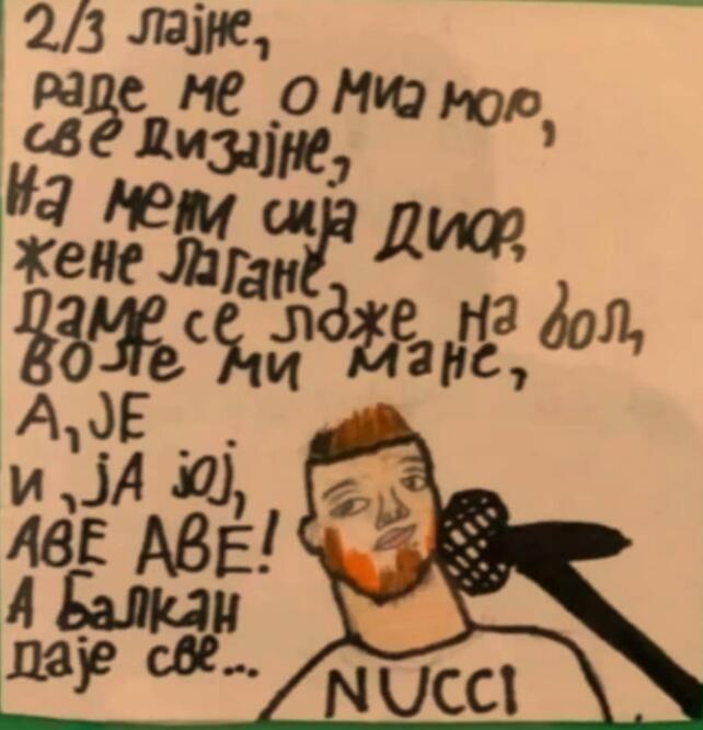 DOŠLO ZADNJE VREME: Učenik 6. razreda ilustrovao pesmu za školski pano 2/3 LAJNE RADE ME, SIJA DIOR, ŽENE LAGANE LOŽE SE NA BOL