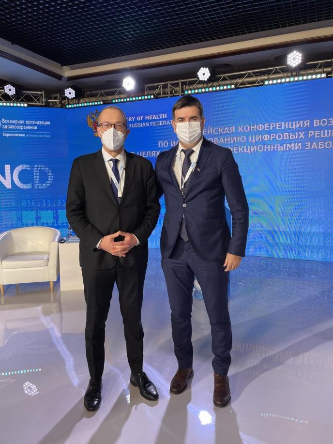 Dr Mirsad Đerlek, državni sekretar u Ministarstvu zdravlja boravi u Moskvi na dvodnevnom naučnom skupu pod pokroviteljstvom SZO, na kome je nakratko razgovarao i sa direktorom SZO za Evropu dr Hansom Klugeom.