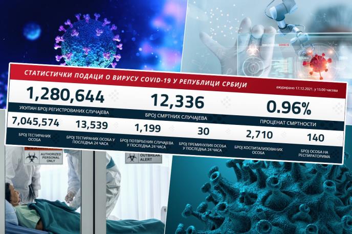U prethodna 24 sata na korona virus testirano je 13,539 građana od kojih je 1,199 novozaražen.