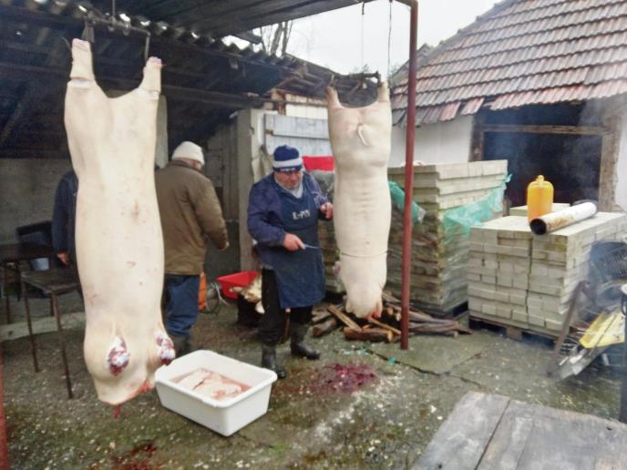 Kum Saša i ja gledamo značajno i znalački naše svinje. Obilazimo oko telesina, zagledamo glave jadnih životinja, koje neko brenerom „brije“. Pitamo se u sebi šta će nama papci, pa ubeđujemo ove oko nas da će biti odlične pihtije, krvavice, švargle...