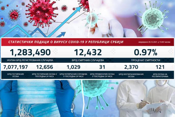 Preminuo je 31 pacijent, a na respiratorima u bolnicama širom Srbije nalazi se 121 oboleli.