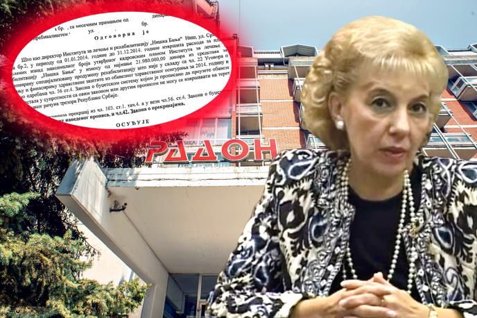 Prof. dr Marina Deljanin Ilić, direktorka Instituta za lečenje i rehabilitaciju Niška Banja, poznatijem kao stacionar "Radon", koja je pravosnažno osuđena za mobing nad internistom prim. mr sc. dr Vladimirom Ilićem, pravosnažno je kažnjena i za nenamensko trošenje bezmalo 22 miliona dinara iz budžeta Republike Srbije za plate prekobrojno zaposlenih.