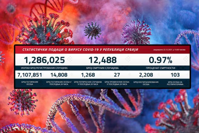Preminulo je 27 pacijenata, a na respiratorima u bolnicama širom Srbije nalaze se 103 obolela.