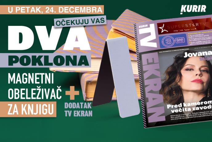 U PETAK, 24. DECEMBRA, U KURIRU VAS ČEKAJU DVA POKLONA! DOBIĆETE MAGNETNI OBELEŽIVAČ ZA KNJIGU plus dodatak TV EKRAN