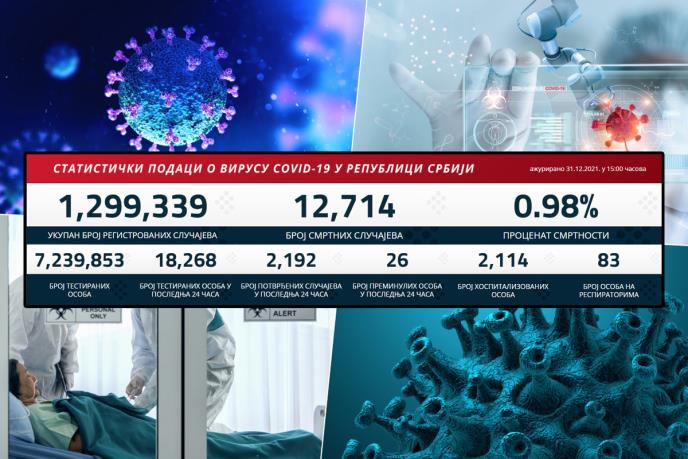 Preminulo je 26 pacijenata, a na respiratorima u bolnicama širom Srbije nalazi se 83 obolelih.