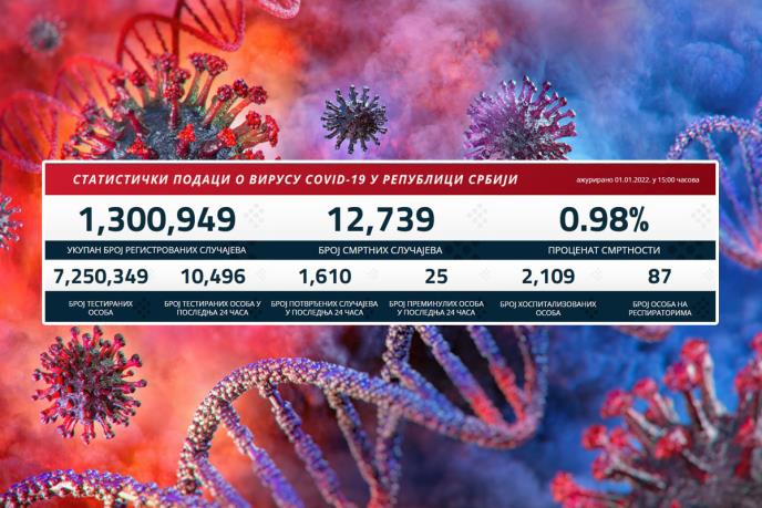 Preminulo je 25 pacijenata, a na respiratorima u bolnicama širom Srbije nalazi se 87 obolelih.