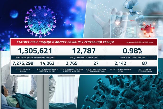 BEOGRAD - U prethodnih 24 sata na korona virus testirano je 14.062 građana od kojih je 2.765 novozaraženih.