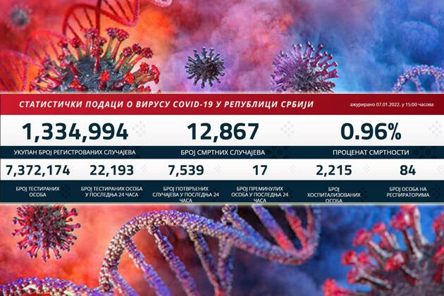 SRBIJA - U prethodnih 24 sata na korona virus testirano je 22.193 građana od kojih je 7.539 novozaraženih.