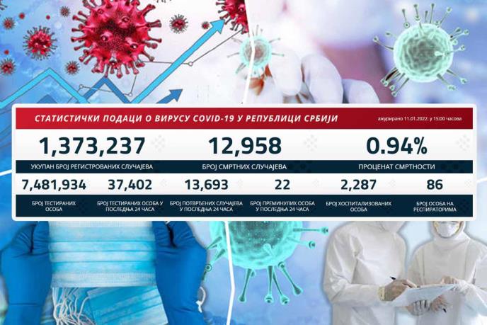 BEOGRAD - U prethodnih 24 sata na korona virus testirano je 37.402 građana od kojih je 13.693 novozaraženih.