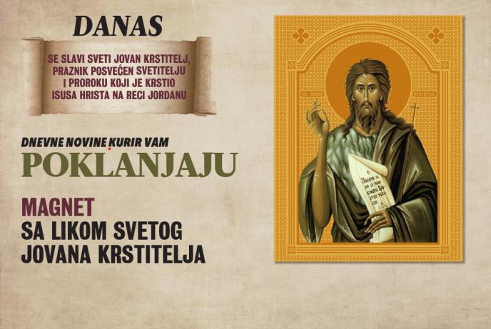 DANAS SE SLAVI SVETI JOVAN KRSTITELJ DNEVNE NOVINE KURIR VAM POKLANJAJU MAGNET SA LIKOM SVETOG JOVANA