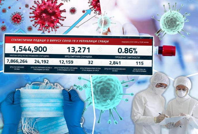U poslednja 24 sata u Srbiji je na korona virus testirano 24.192 građana, od kojih je pozitivno 12.159 dok je, nažalost, preminulo 32.