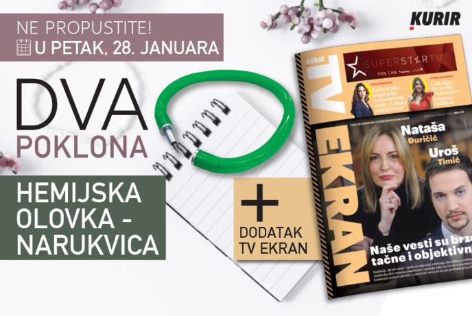 Dnevne novine Kurir i ovog petka poklanjaju svim čitaocima dva poklona. Dobićete poklon narukvicu – hemijsku olovku i dodatak TV Ekran.