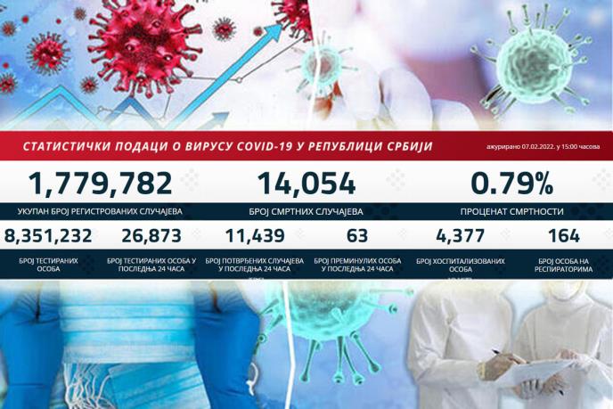 U prethodna 24 sata u Srbiji je na korona virus testirano 26.873 građana od kojih je 11.439 novozaražena.