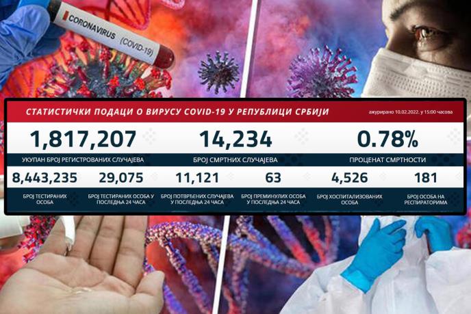 U prethodna 24 sata u Srbiji je na korona virus testirano 29.075 građana od kojih je 11.121 novozaraženih.