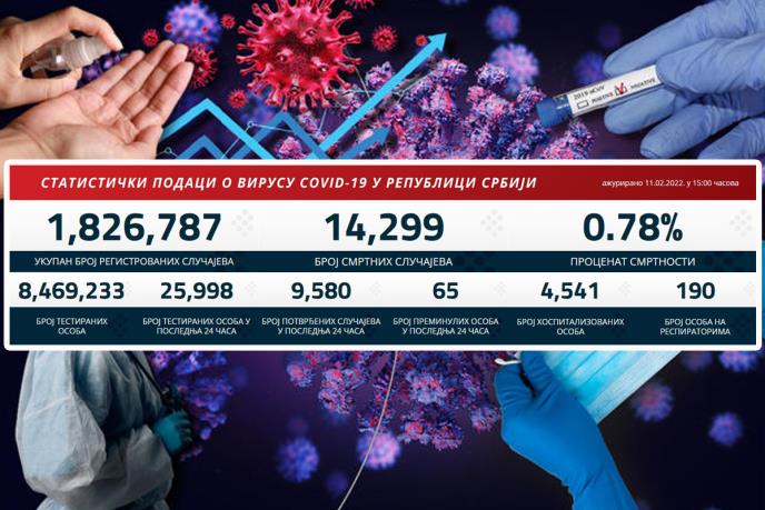 U prethodna 24 sata u Srbiji je na korona virus testirano 25.998 građana od kojih je 9.580 novozaraženih.